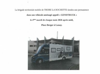 Permanence de la Gendarmerie dans un Gendtruck le mardi 28 avril de 15 h à...Lire la suite